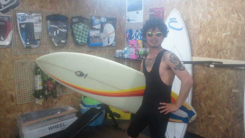 そして今日はブリスのオーナーからマイボードを手渡されました。今までのアウトラインとは全然違うので一体どういうサーフィンが出来るのか不安と期待で一杯です(笑)
